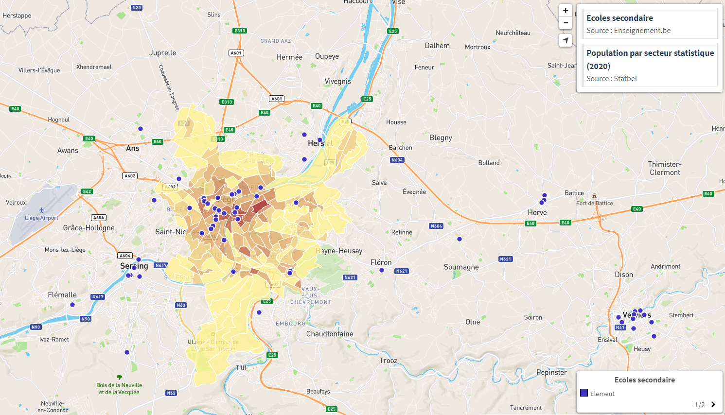 - Afficher l’emplacement des écoles et des pistes cyclables avec l’objectif de cibler les lieux stratégiques pour développer la mobilité douce